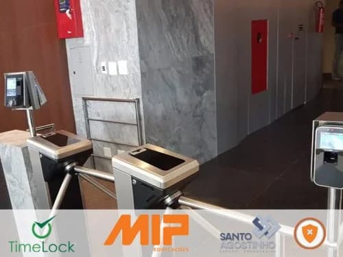 Sistema biométrico com RFID usado no controle de acesso de grande condomínio.